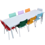 Os móveis escolares da Color Mobile são fabricados com materiais de alta qualidade, especialmente escolhidos para resistir à umidade, manchas e produtos de limpeza. Estruturas metálicas tratadas, tampos laminados e pintura eletrostática contribuem para uma manutenção simples, prática e eficiente. Esse cuidado na escolha dos materiais garante não apenas durabilidade, mas também a aparência de novos por muito mais tempo.